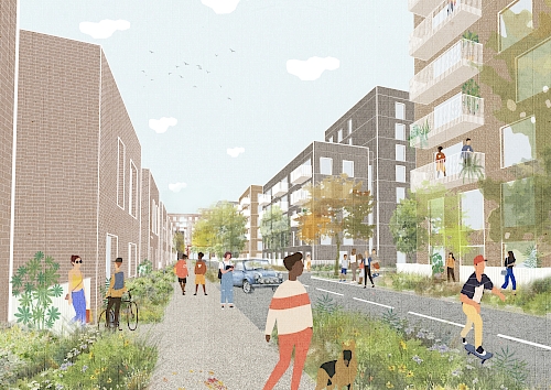 We had a refreshingly unusual brief; to imagine a different relationship with private cars. The resulting dramatic change from car-shaped roads to landscaped sociable streets hints at what we could deliver if this cultural shift could be embraced more widely.”