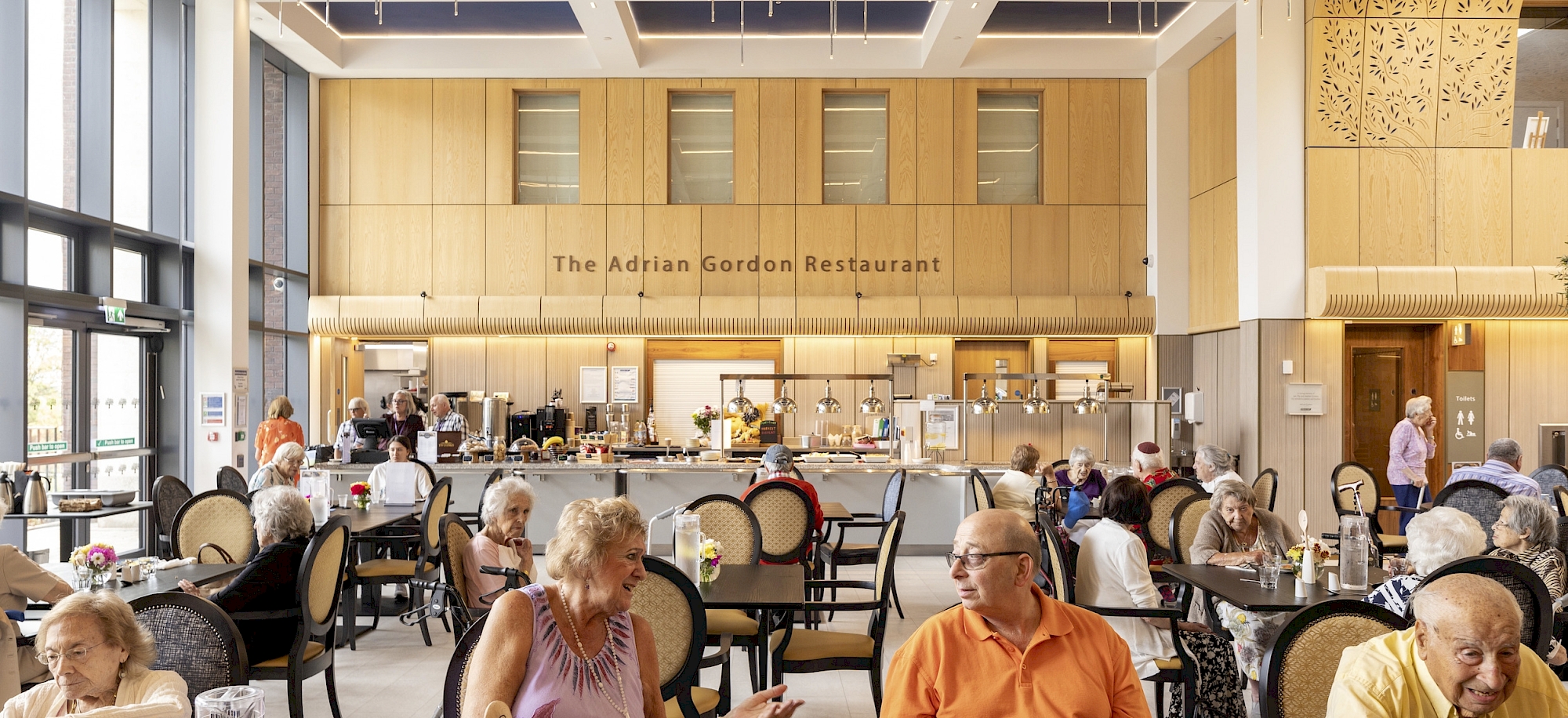 Sandringham is a senior living and care campus on a wooded, greenbelt site in Stanmore. It includes a 64-bed care home with 48 independent-living flats, 16 assisted living suites, dementia day centre services and the Ronson Family Community Centre. The campus explores the concept of sociality – people doing things together with varying degrees of involvement – while providing intimacy and privacy.